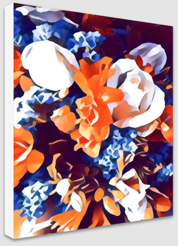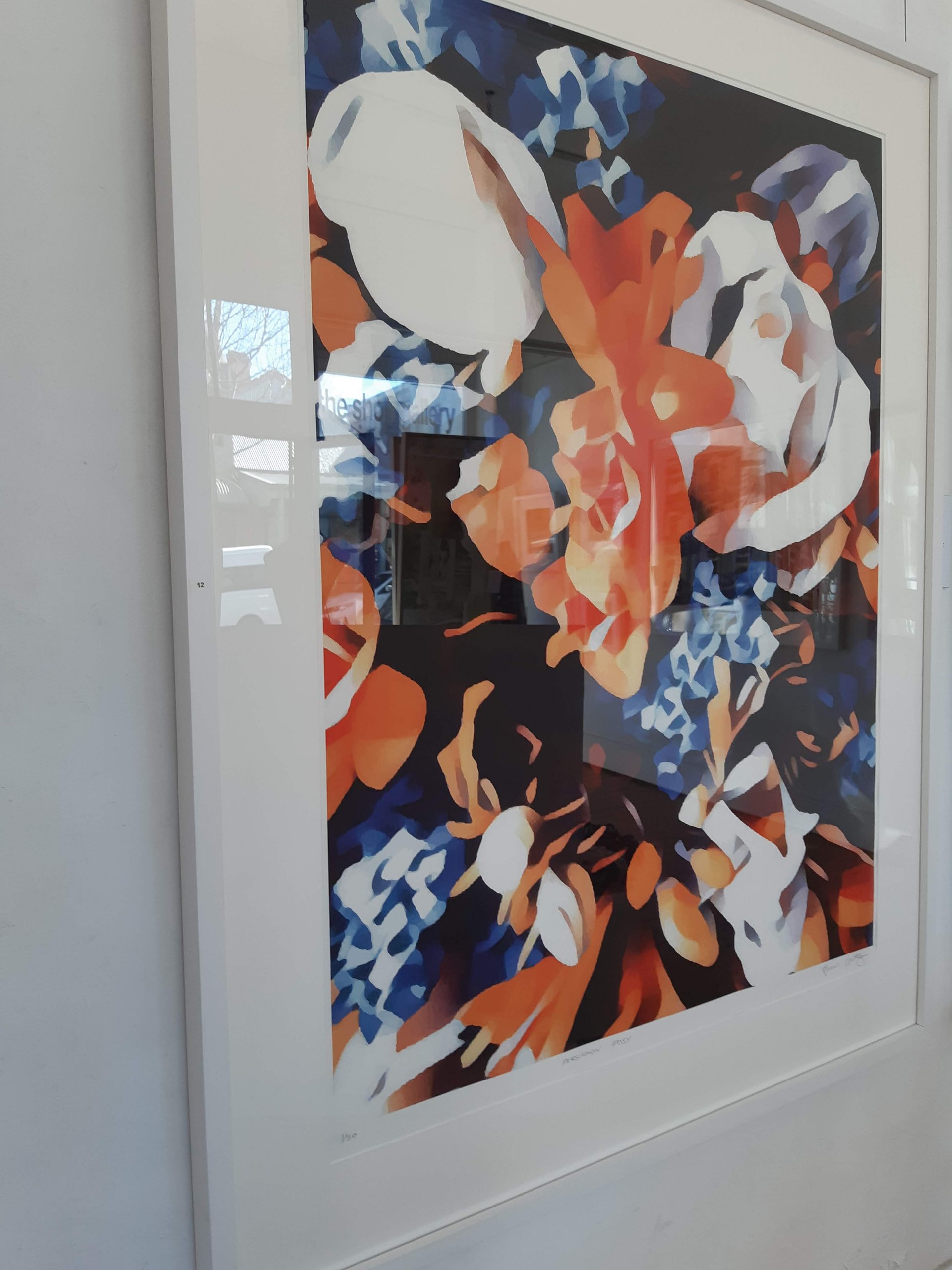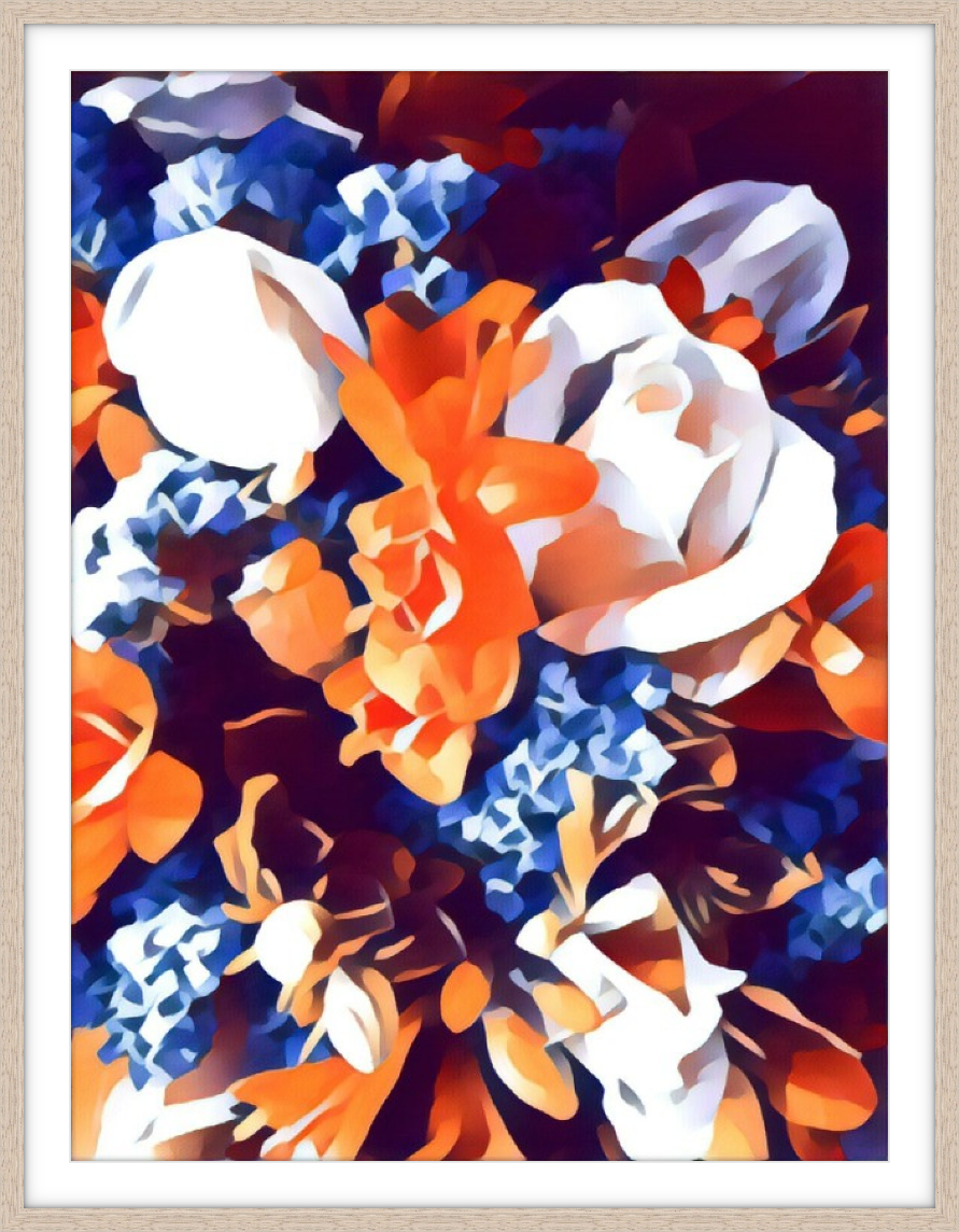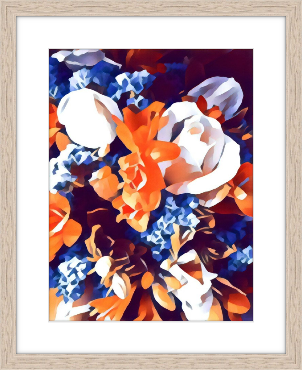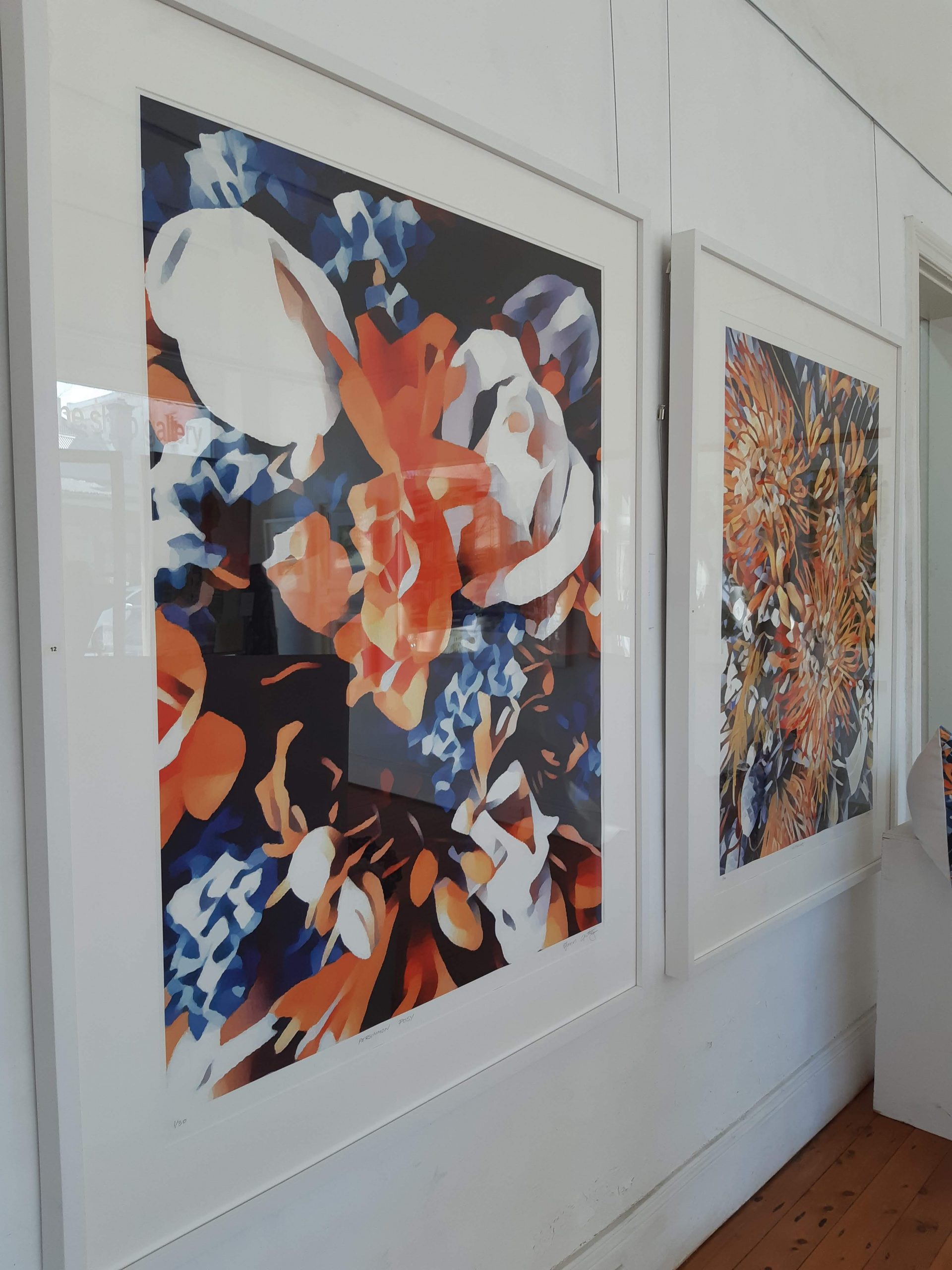 Persimmon Posy 2/30 © created by Kate St James and Catherine Whitting, inspired by the designers love of nature and brilliant colours that are found in flora and the symbolism of flowers in ceremony and gift giving. Persimmon Posy 2/30 © reveals a naturally found palette of rich sunburst ochre and cobalt blues, stunning display of botanical splendor. Persimmon Posy 2/30 © Inspired by site specific art photography of Australian flora. Kate St James and Catherine Whitting have translated photography into a bold, strong and painterly artwork that reflects natural colour.