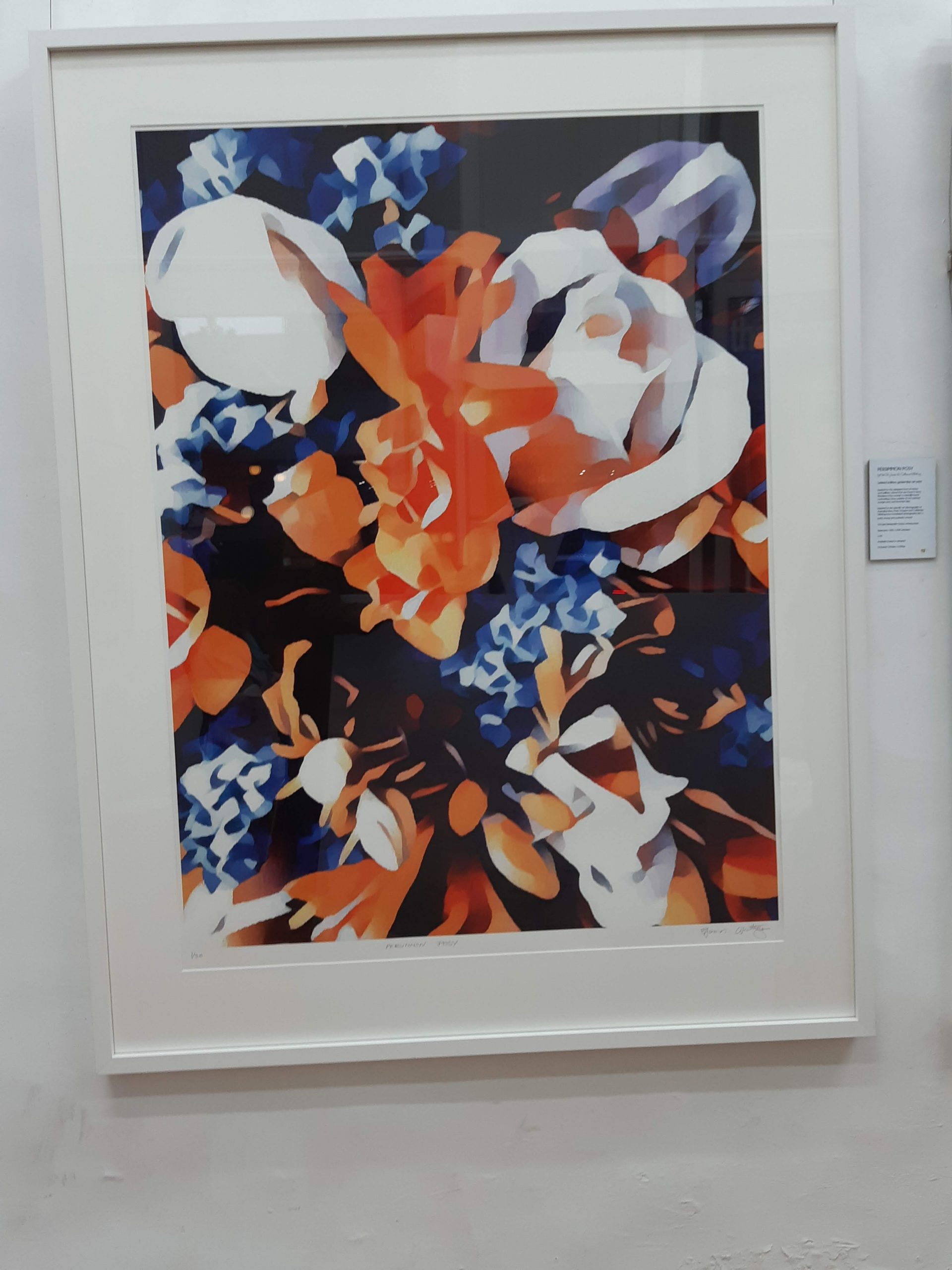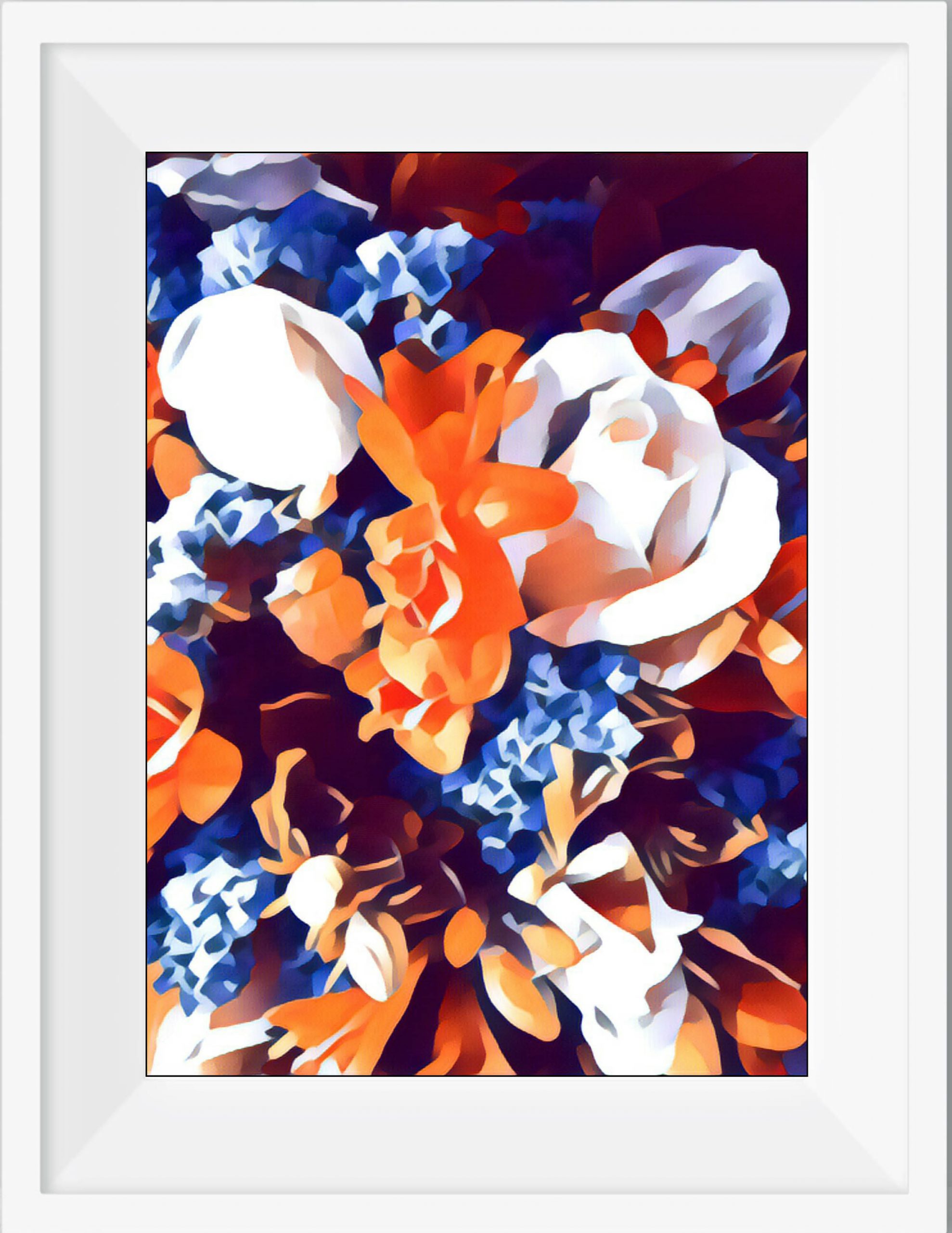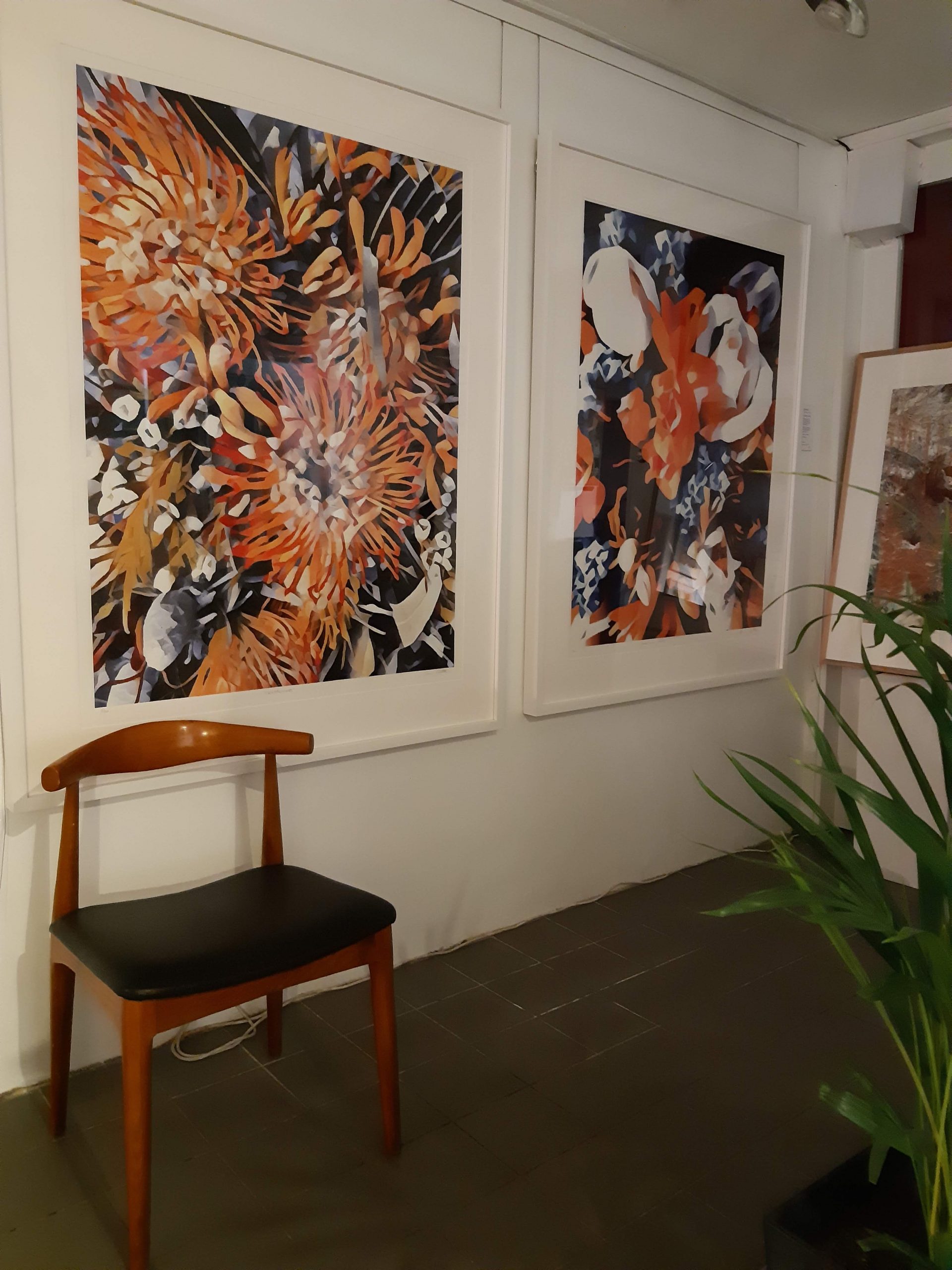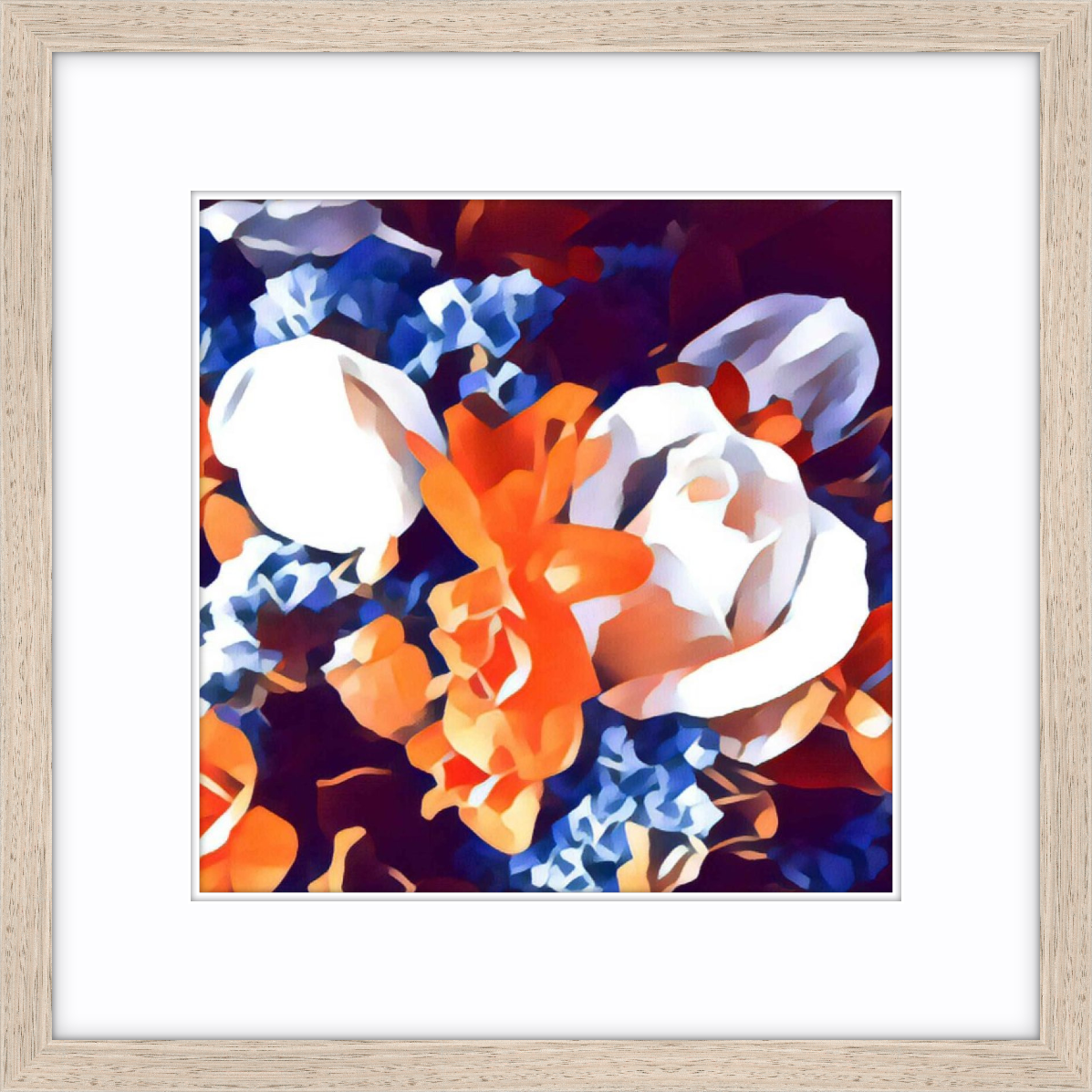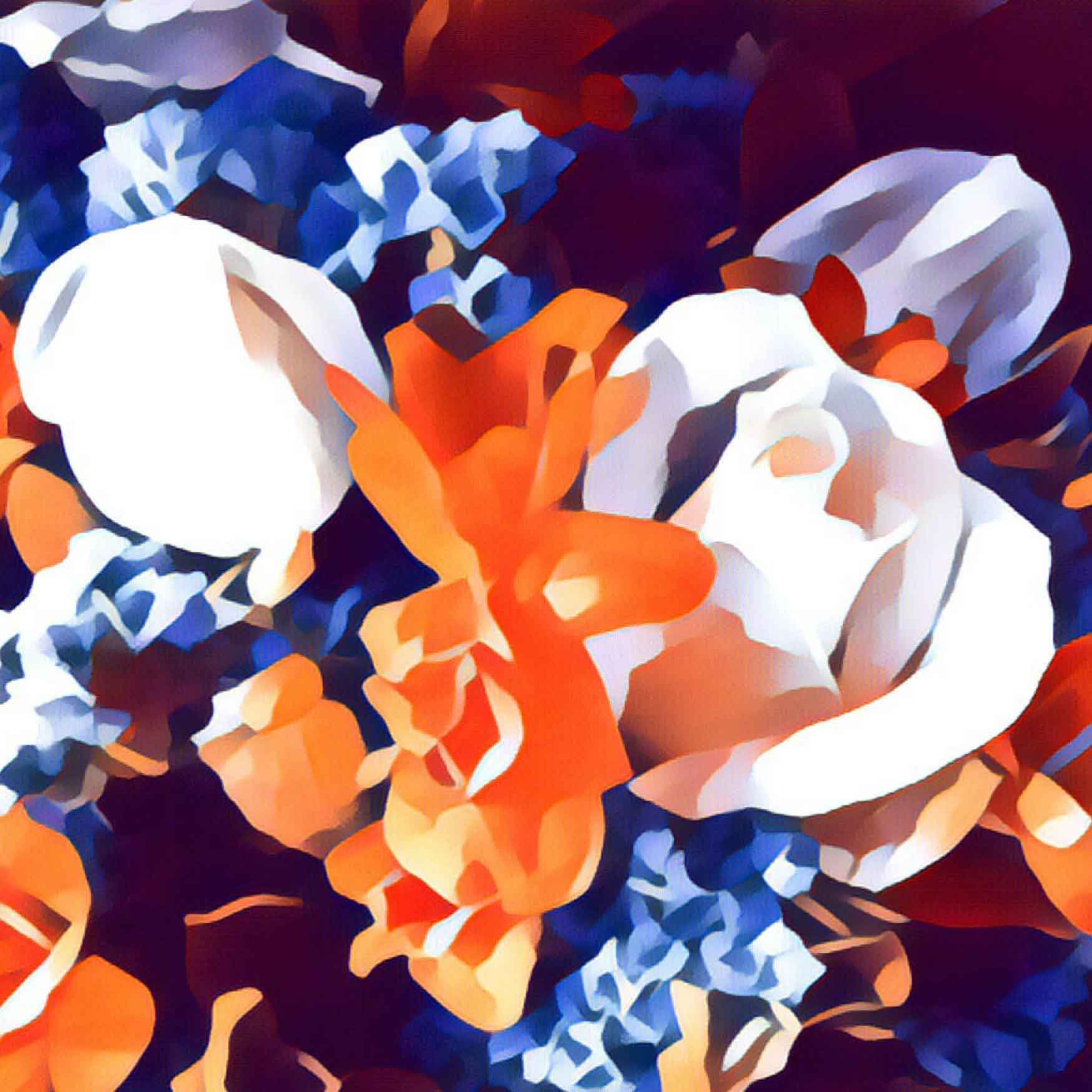 Persimmon Posy 2/30 © created by Kate St James and Catherine Whitting, inspired by the designers love of nature and brilliant colours that are found in flora and the symbolism of flowers in ceremony and gift giving. Persimmon Posy 2/30 © reveals a naturally found palette of rich sunburst ochre and cobalt blues, stunning display of botanical splendor. Persimmon Posy 2/30 © Inspired by site specific art photography of Australian flora. Kate St James and Catherine Whitting have translated photography into a bold, strong and painterly artwork that reflects natural colour.