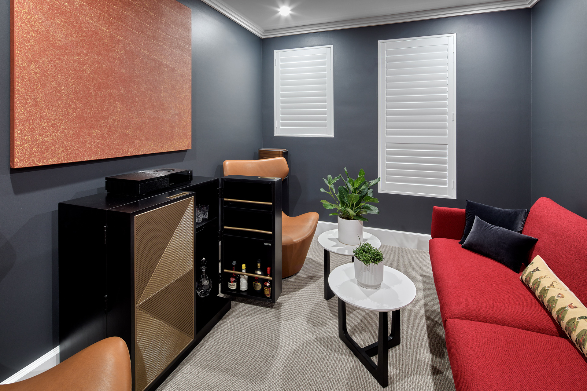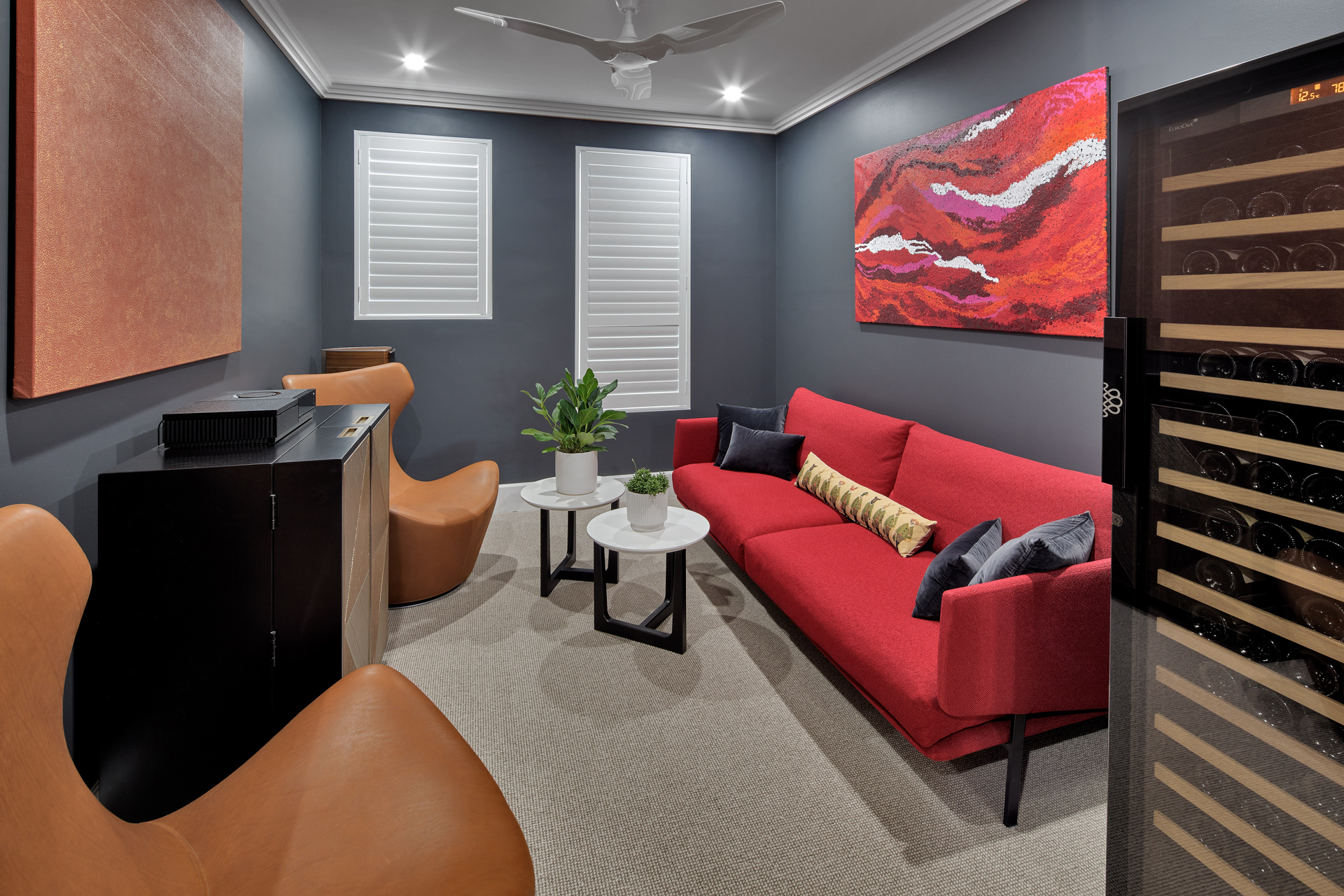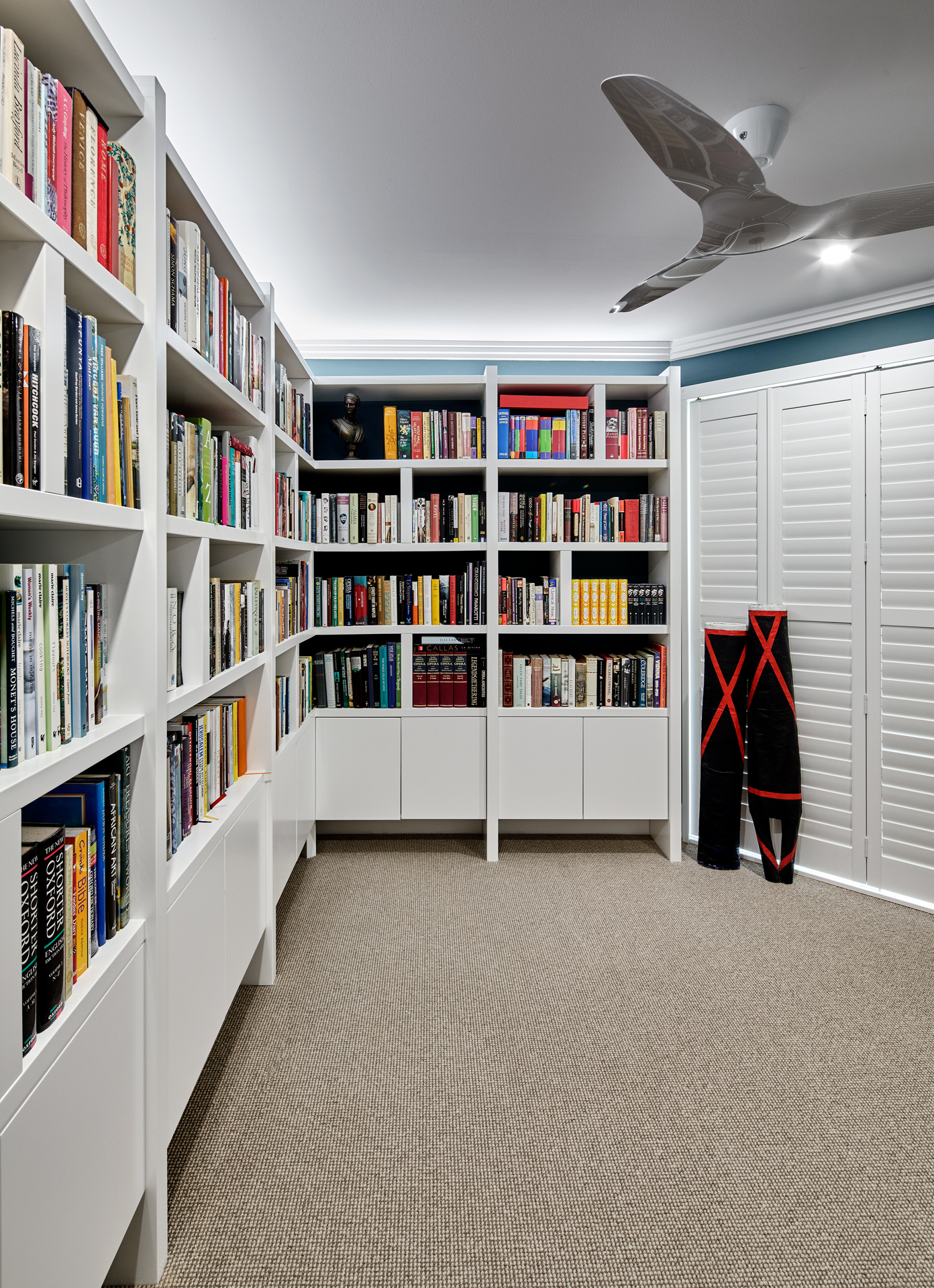 The colour curation of the interior was derived primarily from the owner’s art collection. The interior walls were specially painted to enhance and celebrate each individual painting from her art collection. The colour curation of the Resene paints and art collection actually became the concept for the entire interior design process and provided a palette for all material and product specification. All public spaces were in St James Whitting Igneous and Resene Alabaster and each private area of the home invites you into an immersion of brave colour, rich lusty red near the kitchen, timekeeper teal in the study, atomic and kudos in the master and guest bedrooms. Our colour palette was selected to complement our client’s extensive collection of original artworks along with her love of the colours of the Antarctic. It was important to define each area of her home with an individual colour