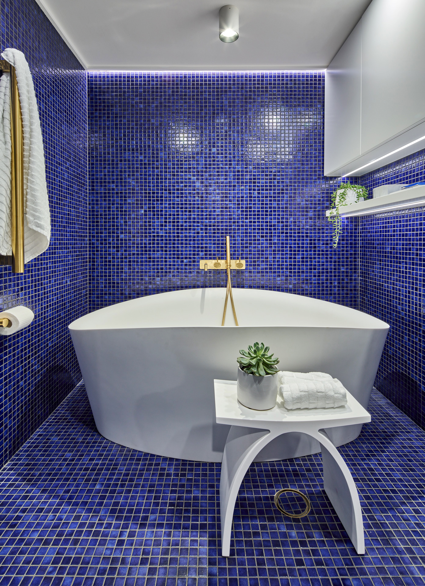 An avid art collector and world traveller the clients brief was simple: “I would like my apartment to embrace quality and sustainability, and reflect my love of contemporary colour, my art collection and my travels to the deep blue and transformative waters of the Antarctic. I want a space to totally relax in and to immerse and lose myself in colour.”